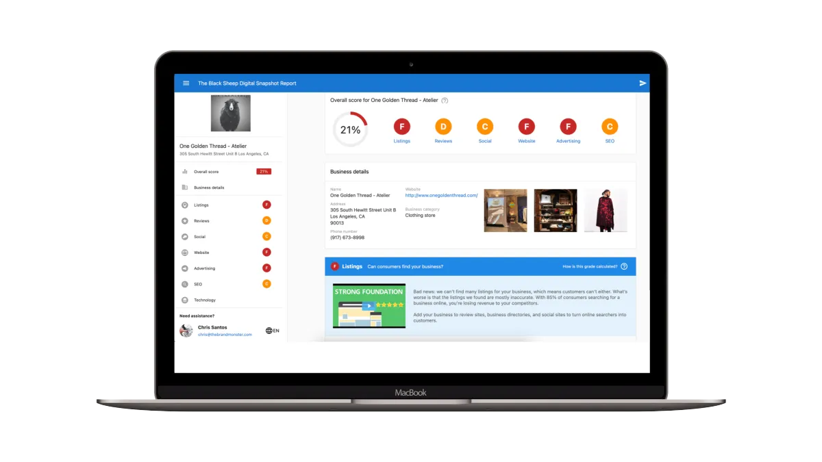 This digital scrape analyzes every aspect of your business. Results Take a full 24hs to process! We will email you the report ASAP.